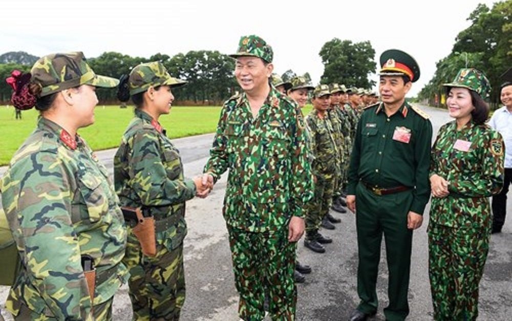 Chủ tịch nước Trần Đại Quang và chúc mừng, động viên các nữ tuyển thủ thuộc Đoàn tuyển thủ bắn súng quân dụng Quân đội.