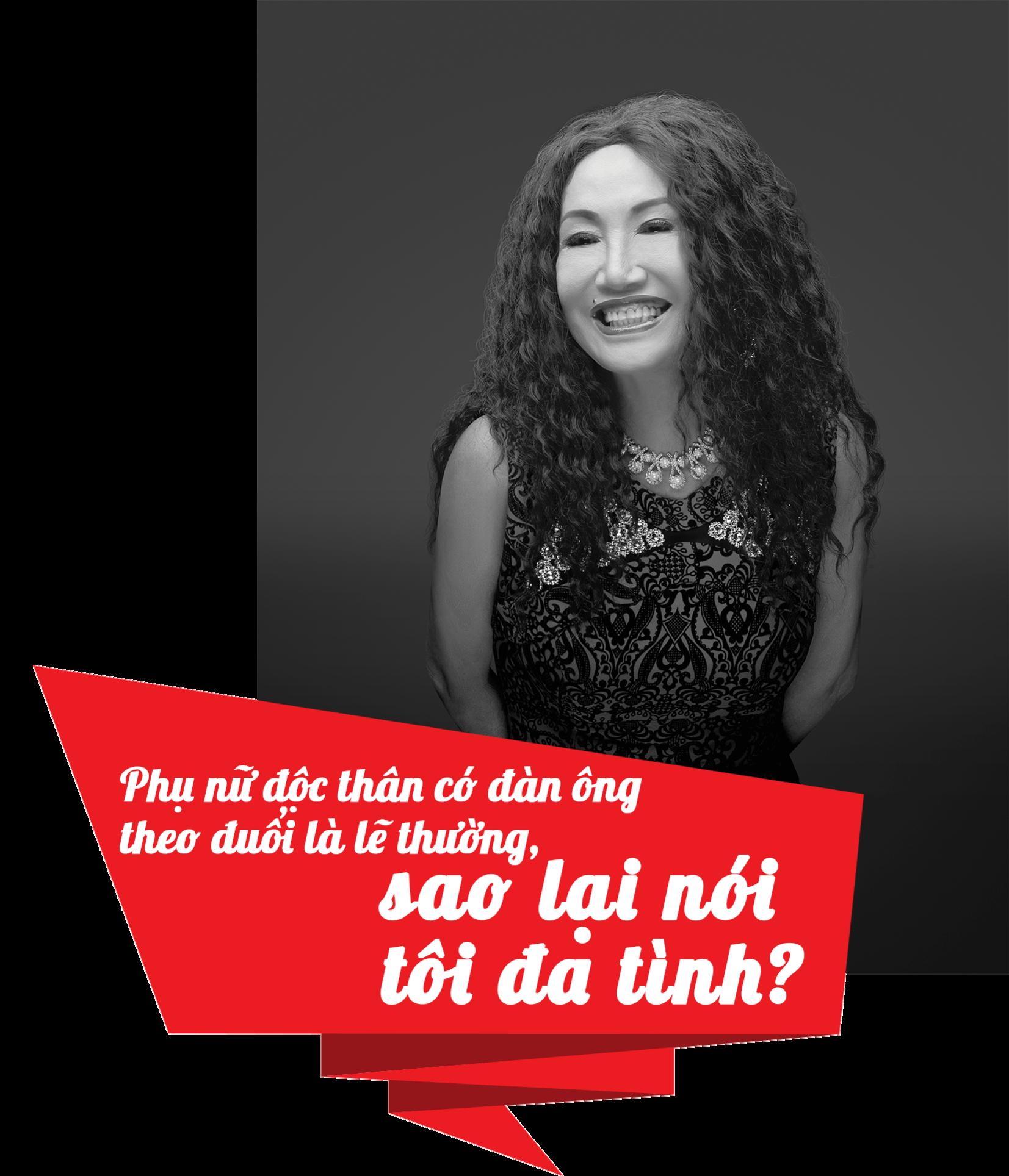 Phụ nữ độc thân có đàn ông theo đuổi là lẽ thường, sao lại nói tôi đa t́nh? Tất cả những người đàn ông tôi quen, họ đều chủ động t́m đến lấy ḷng tôi. Tôi biết ḿnh có chút nhan sắc nên nhiều người theo đuổi. Đến tuổi này vẫn có người theo đấy, nhưng tôi không thích nên cứ ở vậy thôi.