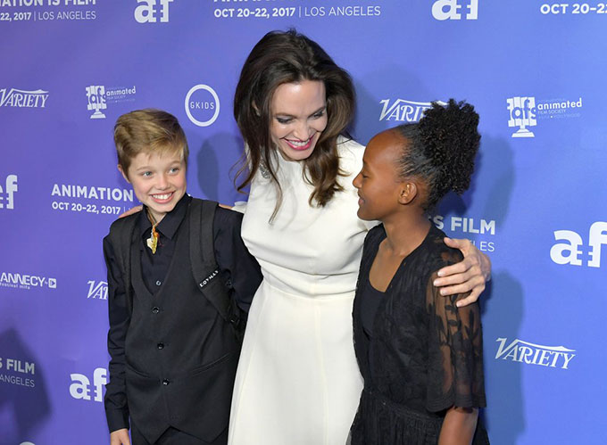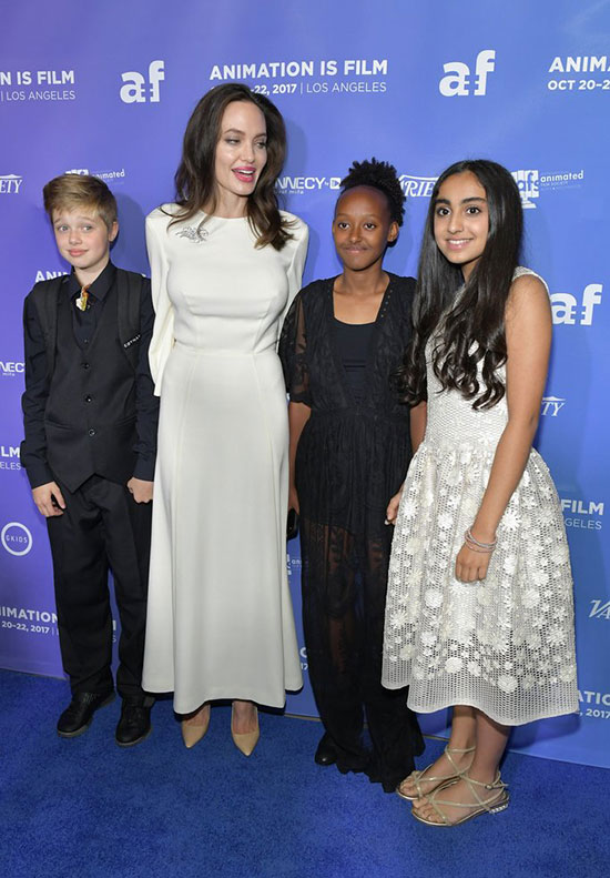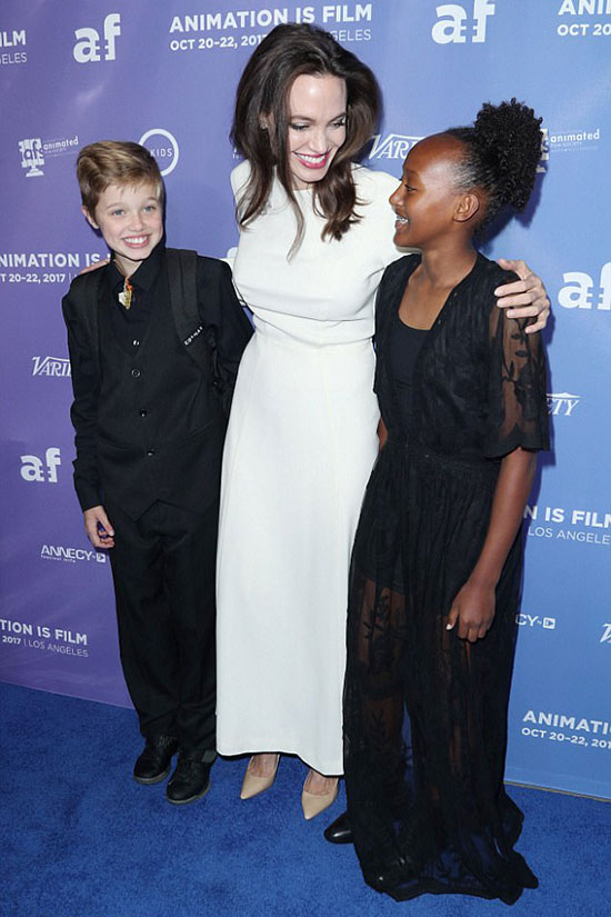 Angelina Jolie xinh tươi cùng hai công chúa trên thảm đỏ lễ ra mắt phim