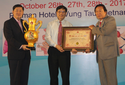 Phó giáo sư Nguyễn Trường Sơn, Giám đốc Bệnh viện Chợ Rẫy đại diện nhận bằng xác lập kỷ lục. Ảnh: K.L