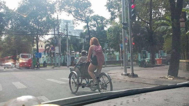 Cộng đồng mạng lan truyền hình ảnh cô gái nước ngoài chở bác xích lô dạo phố. Mọi khi toàn ngồi sau giờ lại được ngồi trước nên có vẻ bác xích lô hơi căng thẳng. Có lẽ đây sẽ là một trải nghiệm thú vị và đặc biệt với bác xích lô.