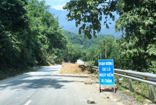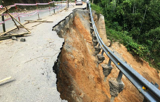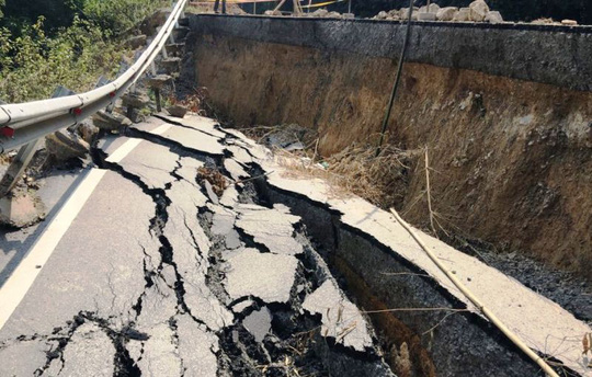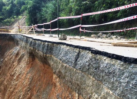 Đây là những điểm sạt lở xuất hiện từ đầu tháng 10-2017, trong trận mưa lũ lịch sử vừa qua. Theo ghi nhận, có nhiều vị trí đã bị sụt lún, nứt mặt đường về phía ta luy âm. Có những đoạn, cả một mảng đường sụt sâu xuống khoảng hơn 2 m. Đoạn sụt lún này xuất hiện từ km 51 đến km 72, các điểm nứt, sụt lún vẫn chưa được khắc phục.