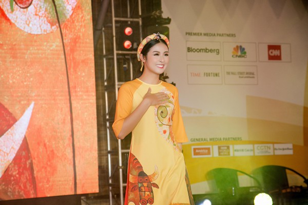 Tối 8.11, Ngọc Hân là một trong số những nghệ sĩ tham gia tiệc chào mừng Hội nghị cấp cao APEC 2017 tại Đà Nẵng. Hoa hậu chia sẻ, cô đã giới thiệu đến các quan khách bộ sưu tập áo dài 'Bức họa đồng quê' và nhận được rất nhiều tràng vỗ tay của mọi người. Nhiều vị khách quốc tế còn khen ngợi trang phục áo dài do Ngọc Hân thiết kế rất ấn tượng và mang hồn Việt.
