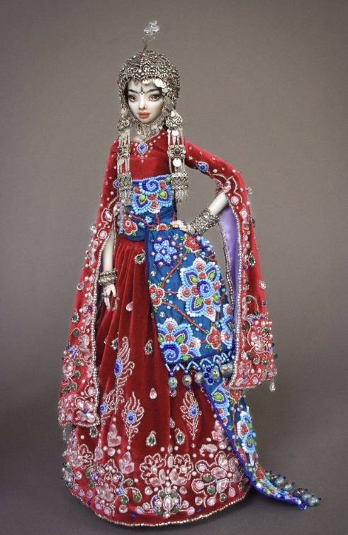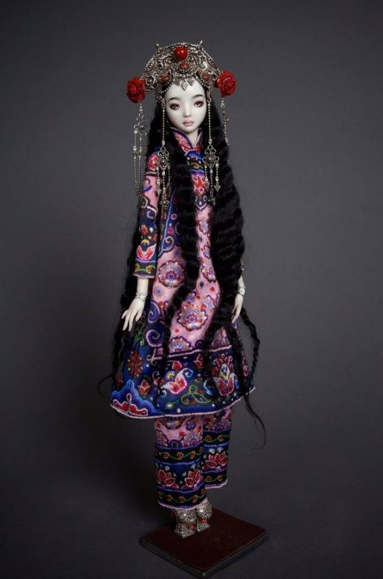 Do tác giả là người Nga nên quần áo của búp bê hầu hết đều mang âm hưởng xứ sở Bạch Dương. Từng bộ váy đều được thêu hoa văn cầu kỳ kèm theo những chuỗi hạt lấp lánh, khăn và mũ cài đầu được tô điểm bằng hoa hoặc trang sức lộng lẫy. Ngoài ra, Marina Bychkova cũng tạo ra một vài tác phẩm theo phong cách Trung Hoa. Trong đó, chi tiết đắt giá nhất chính là đôi chân búp bê được mô phỏng theo “bàn chân gót sen” – một nét văn hóa ngày nay đã biến mất ở Trung Quốc. Được biết, một đôi bàn chân tí hon như thế này có giá từ 6,8 – 10 triệu VND.