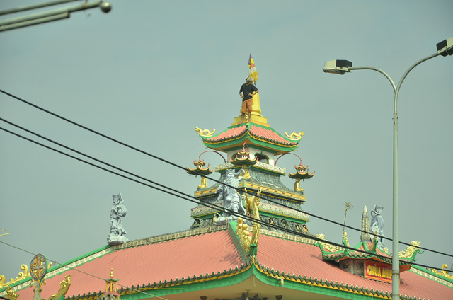 Thanh niên quậy phá, đứng trên nóc chùa cả buổi sáng