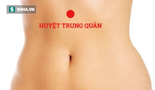 Huyệt trung quản nằm giữa đường chỉ kết nối rốn và ngực, khu vực dạ dày (xem ảnh). Dùng bàn tay mát xa huyệt này hoặc ngón tay bấm vào đây với lực hơi mạnh một chút cho đến khi cảm thấy hơi tê tê đau đau thì dừng lại.