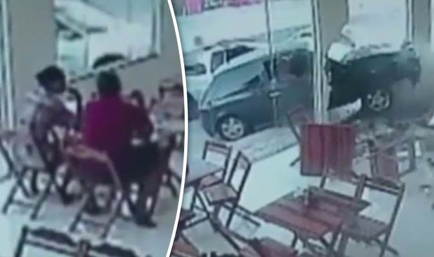 Đến giờ cặp đôi này vẫn còn hoảng hồn. Số là họ đang cùng nhau thưởng thức bánh ngọt và xem TV trong một của hàng tại Brazil. Bỗng nhiên một chiếc ô tô lao đến với tốc độ cao...
