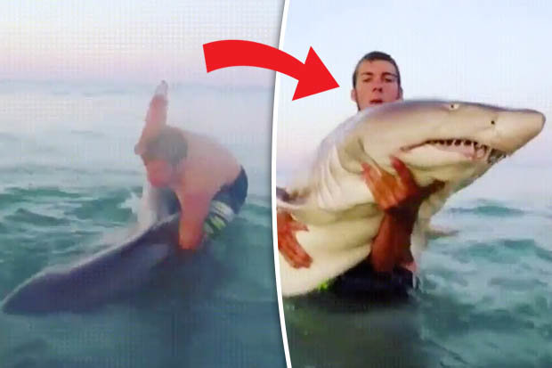bạo gan, bế thốc, cá mập, chuyện lạ, Người đàn ông, trên biển, video