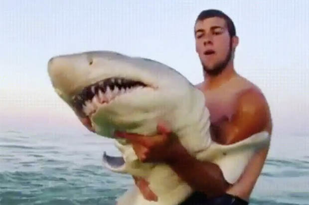 Người đàn ông bạo gan bế thốc cá mập khủng trên biển. Cá mập là loài cá đáng sợ với nhiều người. Nhiều vụ cá mập tấn công người đã khiến nhiều người ám ảnh.