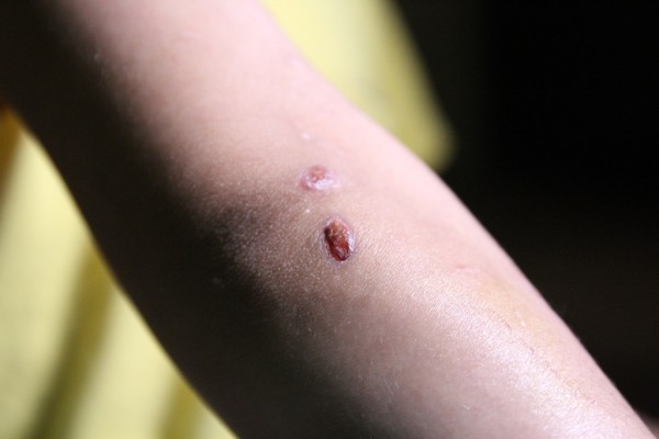 Những vết thương cũ chưa kịp lành thì bé Kh. lại phải chịu thêm những thương tích mới.