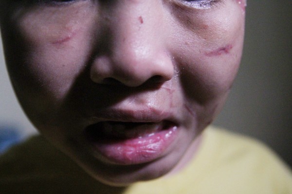 Giờ đây trên mặt Kh. chi chít những vết thương cũ và những vết thương chưa lành. Cậu bé vẫn còn rất hoảng sợ mỗi khi nhớ lại những gì xảy ra trong suốt gần 2 năm qua.