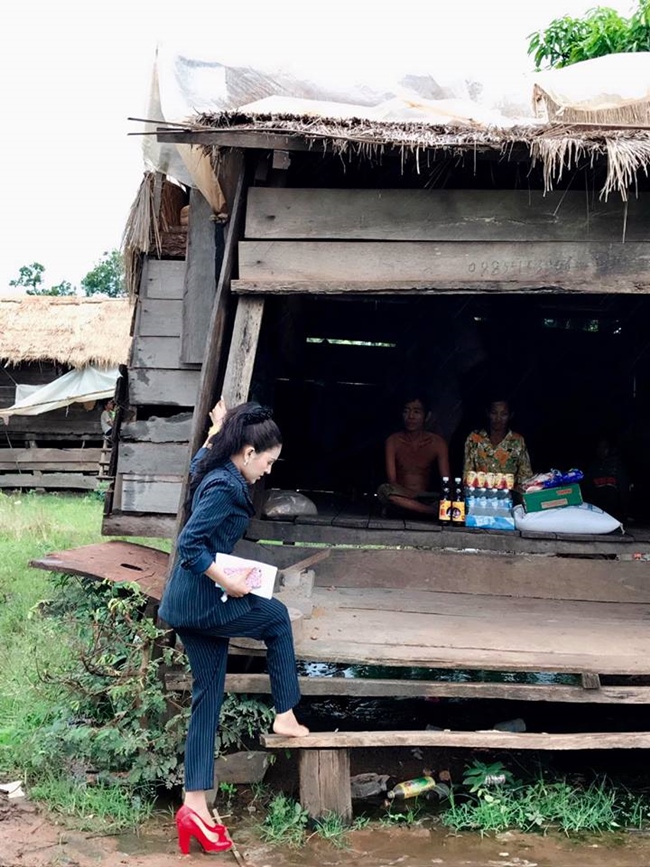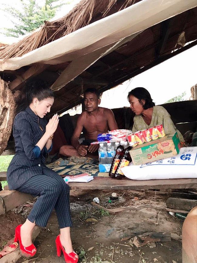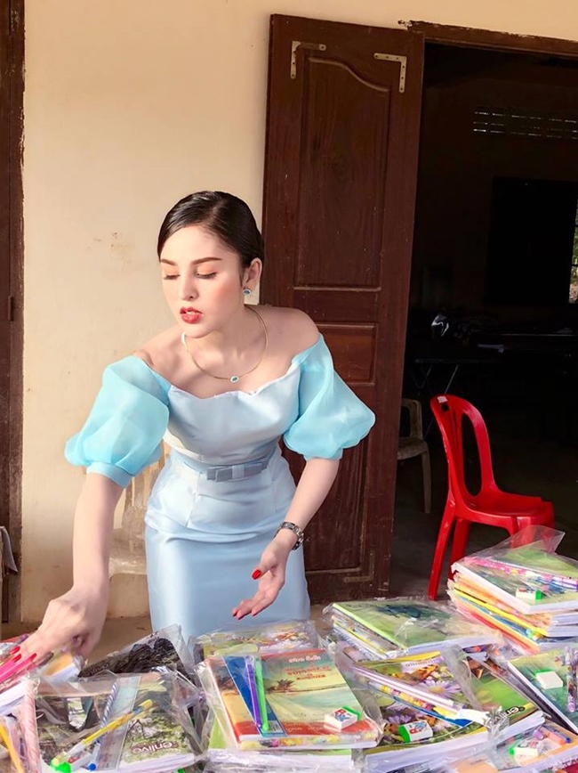 Mỹ nữ có bộ ngực "thèm khát" mặc gợi cảm khi đi từ thiện gây bức xúc