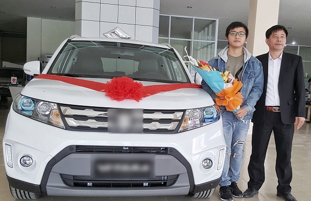 Kèm theo lời chia sẻ là bức ảnh chàng sinh viên đứng cạnh bố mình. Gương mặt người bố đầy hãnh diện bên chiếc xe hơi mới được con trai tặng.
