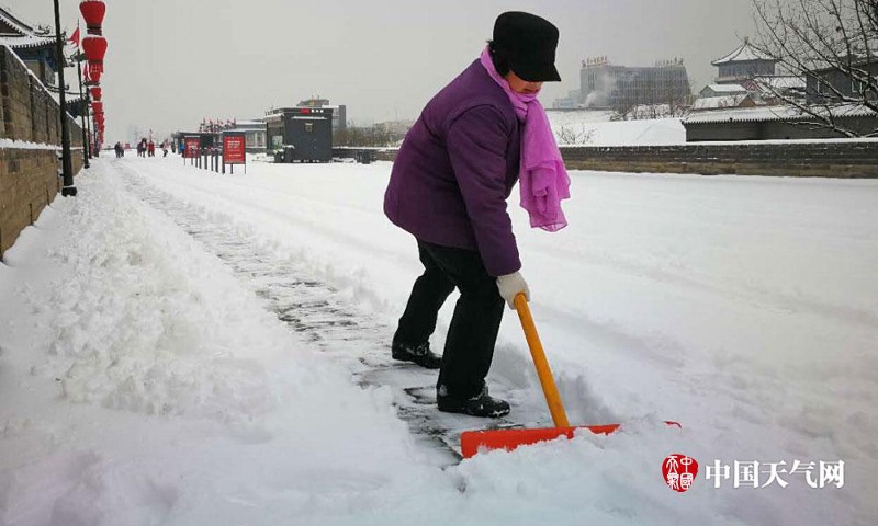 Người phụ nữ dọn tuyết ở tỉnh Tây An.