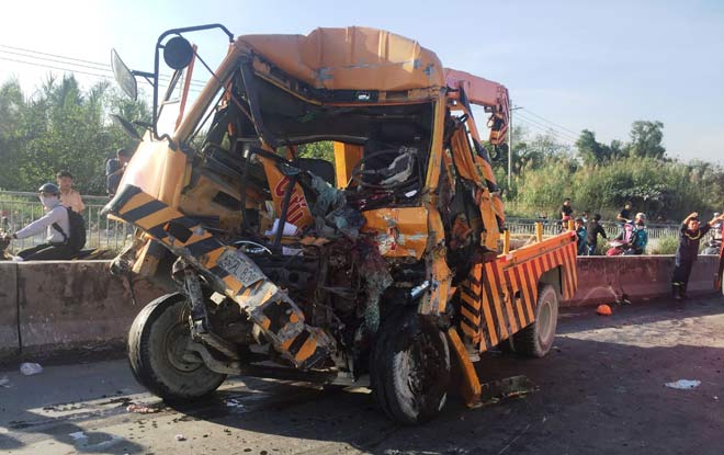 Va chạm khủng khiếp với xe container, đầu xe cứu hộ bẹp dúm biến dạng