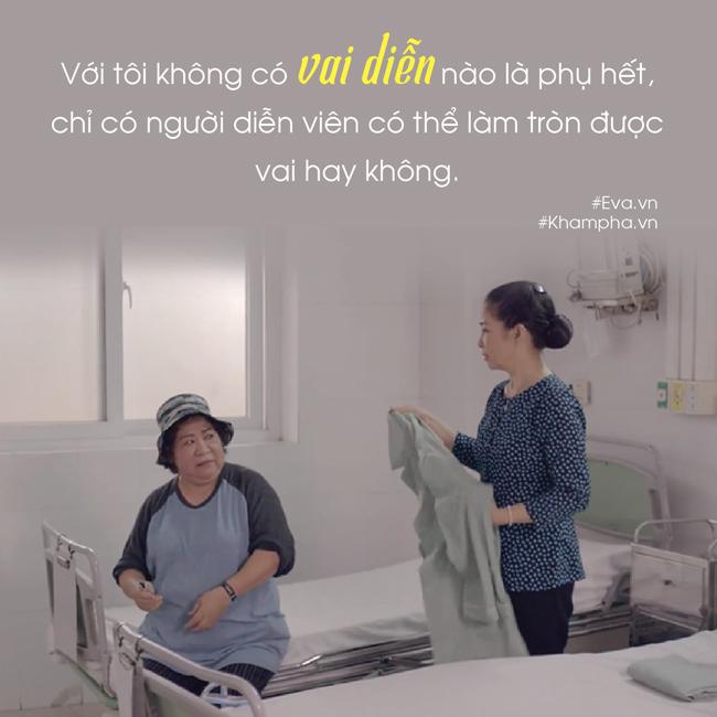 Nhiều khán giả có nhắn tin và gọi điện cho tôi v́ thấy tiếc cho nhân vật bà Hến không được kéo dài lâu hơn. Mọi người cũng bày tỏ rằng không ngờ một diễn viên tầm cỡ như tôi mà lại nhận đóng vai phụ. Tôi đă trả lời rằng, với tôi không có vai diễn nào là phụ hết, chỉ có người diễn viên có thể làm tṛn được vai hay không.