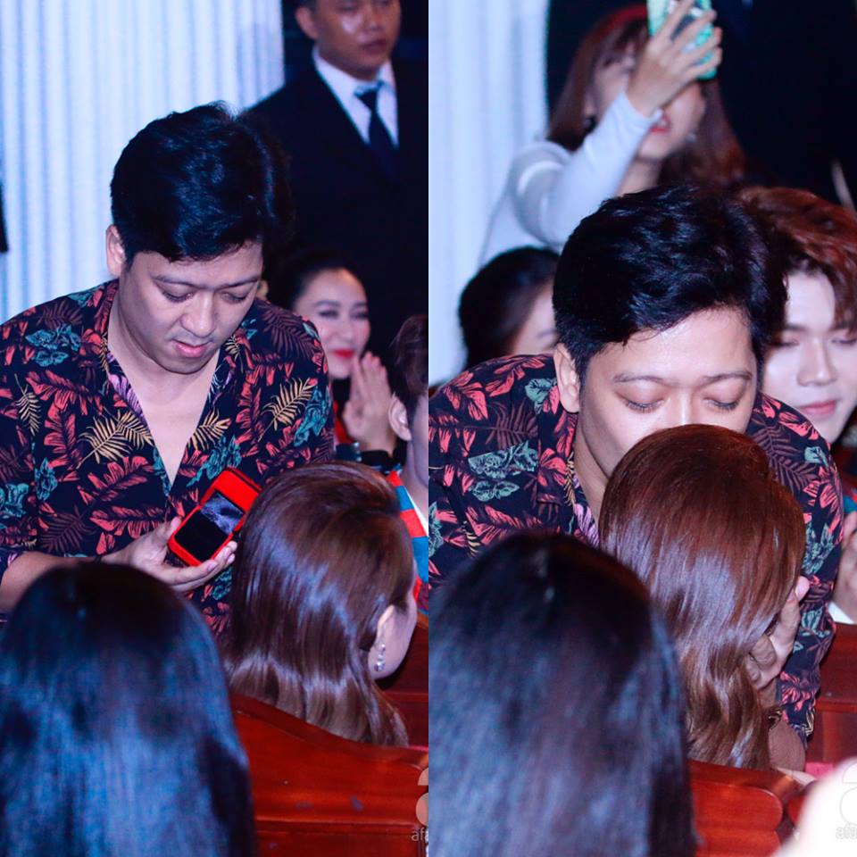 Nhận được 2 giải thưởng, Trường Giang gửi lời cảm ơn ngắn gọn. Sau đ, anh tỏ ra hồi hộp, xin php được lm điều một lần trong đời, khng c lần thứ 2. Anh mang nhẫn kim cương được cất trong b hoa ra v hỏi khn giả c thấy người yu Nh Phương đang ngồi ở đu.