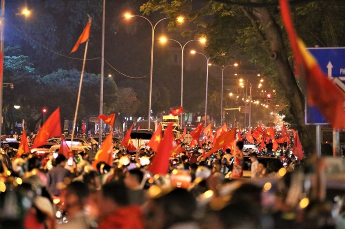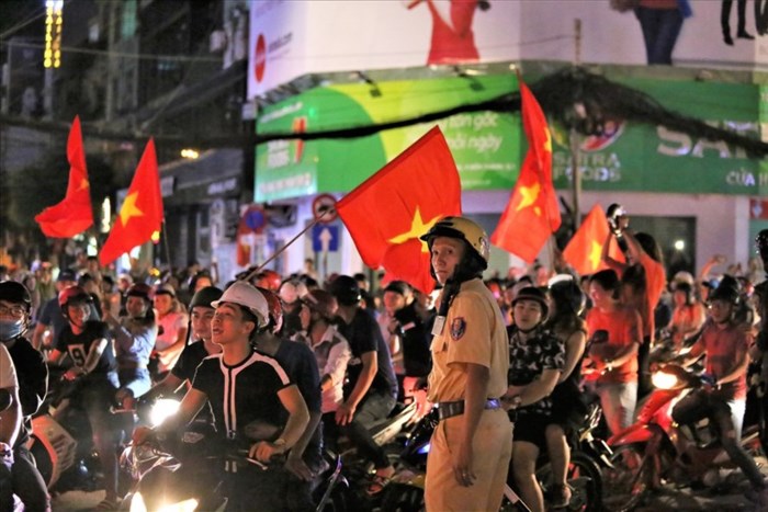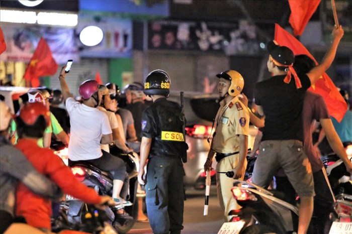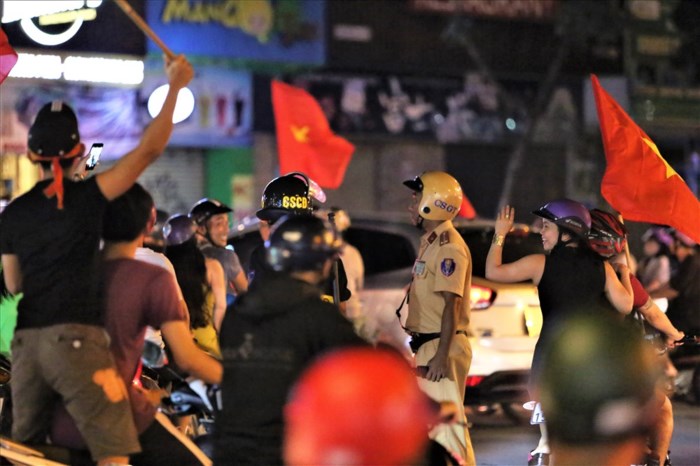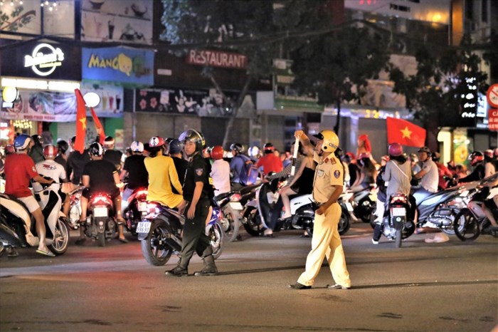VBF-Tối qua là một ngày đáng nhớ khi người dân đổ hết ra đường ăn mừng chiến thắng. Cảnh sát lúc này có cũng bằng không vì dòng người quá đông chen chúc nhau mà đi. Dù họ cũng đóng vai trò quan trọng, nhưng cứ nhìn dòng người sẽ thấy có họ hay không cũng được.