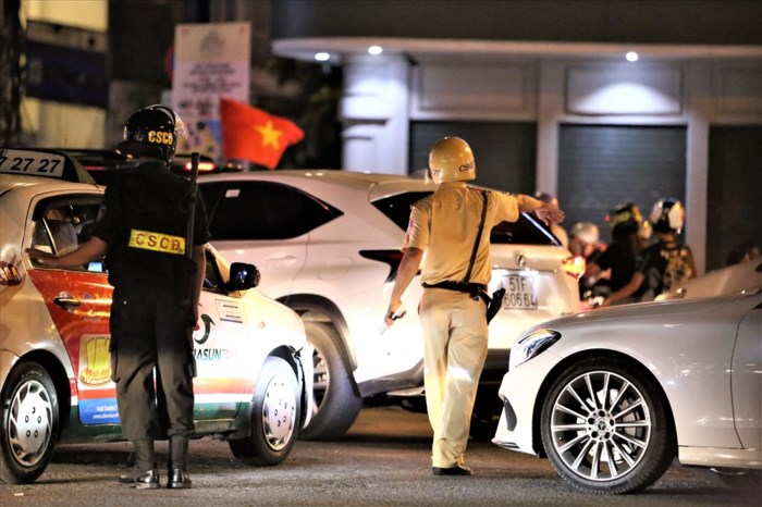 Để hạn chế dòng người đổ vào trung tâm thành phố, cảnh sát đã chốt chặn nhiều tuyến đường. Ảnh: Trường Sơn