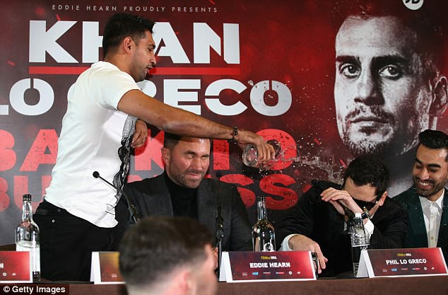 Võ sĩ người Anh Amir Khan hắt cốc nước vào đối thủ người Canada - Phil Lo Greco tại cuộc họp báo vừa diễn ra. Sự việc đã suýt trở thành một cuộc ẩu đả.