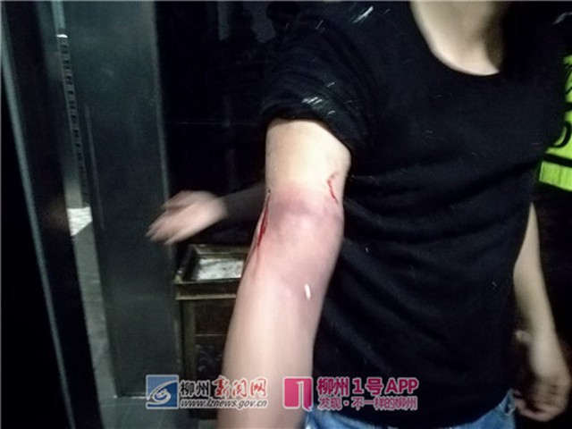 Cánh tay của anh chàng họ Đàm trở nên tím bầm, xước xát sau khi mắc kẹt dưới xí xổm