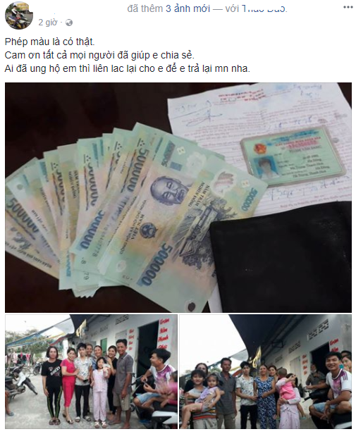 Sau khi đăng ít phút, bài viết đã thu hút sự chú ý của cộng đồng mạng khi nhận được hàng ngàn lượt thích, chia sẻ và bình luận. Nhờ sức mạnh của cộng đồng mạng, ngay trong buổi chiều cùng ngày gia đình nhặt được được chiếc ví đã liên hệ với chủ nhân của nó và trả lại không thiếu 1 nghìn lẻ. Câu chuyện này tiếp tục được đăng tải khiến nhiều người tin rằng, đúng là cổ tích vẫn hiện hữu giữa đời thường.