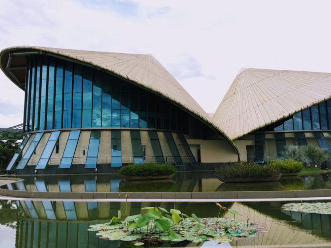 Nhà hát Cao Văn Lầu với hình tượng mái nhà là 3 chiếc nón lá. Là một công trình kiến trúc độc đáo cũng là điểm checkin được giới trẻ yêu thích