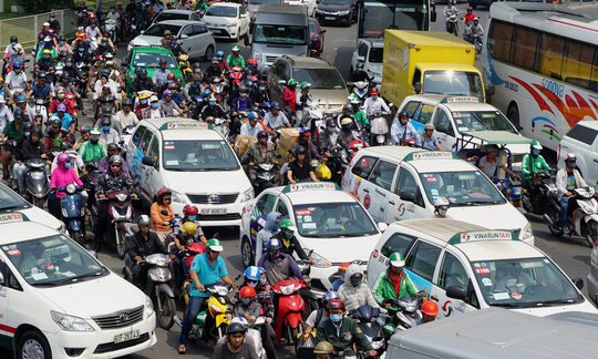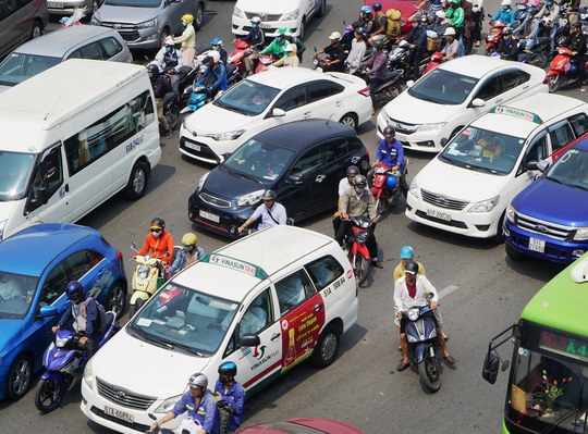 Trong khi dòng xe máy phải kèn cựa từng chút không gian, len lỏi trong khoảng hở giữa dòng ô tô, đi chậm chạp