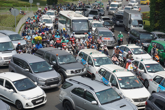 Ùn ứ bắt đầu xảy ra từ khoảng 11 giờ, tại nhiều tuyến đường xung quanh sân bay Tân Sơn Nhất nhưng đường Trường Sơn là tuyến chịu trận nghiêm trọng nhất