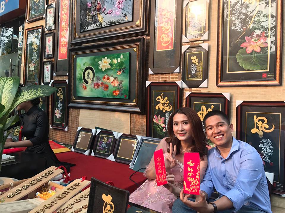 Phố ông đồ trở thành điểm đến không thể bỏ qua của giới trẻ Sài thành. Nhiều bạn trẻ xúng xính áo dài khăn đóng, chọn nơi đây để ghi lại những khoảnh khắc tươi nhất dịp năm mới. Ảnh: *********