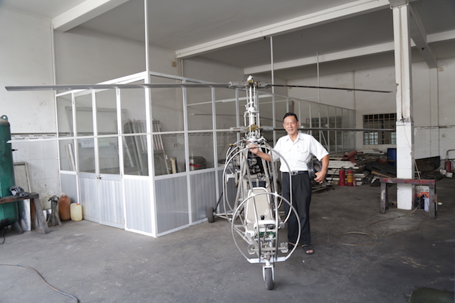 Về động cơ thì qua tìm hiểu tài liệu, tôi biết động cơ hai thì có thể bay được máy bay trực thăng. Từ đó, tôi đi tìm mua động cơ hai thì công suất 105 mã lực ở trong một chiếc cano công suất lớn. Tuy nhiên, mô-tơ này nhanh chóng, chỉ bay được chừng 10 - 15 phút là phải tạm nghỉ; sau tôi phải thay bằng động cơ chuyên dụng có giá hơn 5.000 USD.