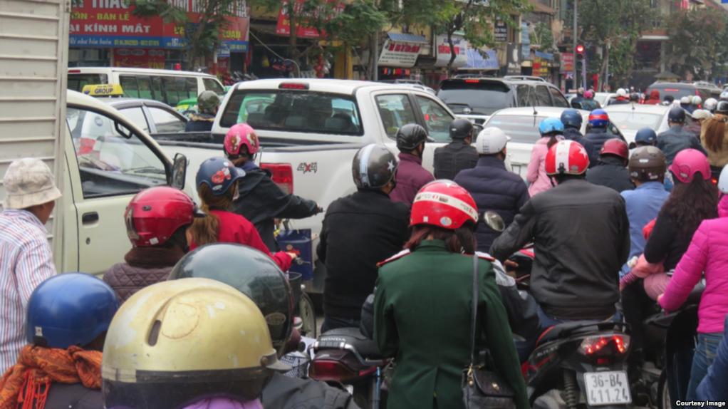 Cảnh ùn tắc thường xuyên xẩy ra trên các đường phố ở Hà Nội dịp giáp Tết, kể cả trên các tuyến đường một chiều.