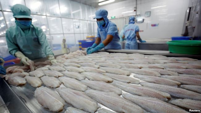 Công nhân của một nhà máy hải sản ở thành phố Cần Thơ.