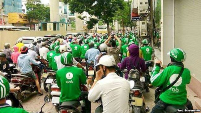 Tài xế Grabbike đình công ở thành phố Hồ Chí Minh. (Ảnh: VTC)