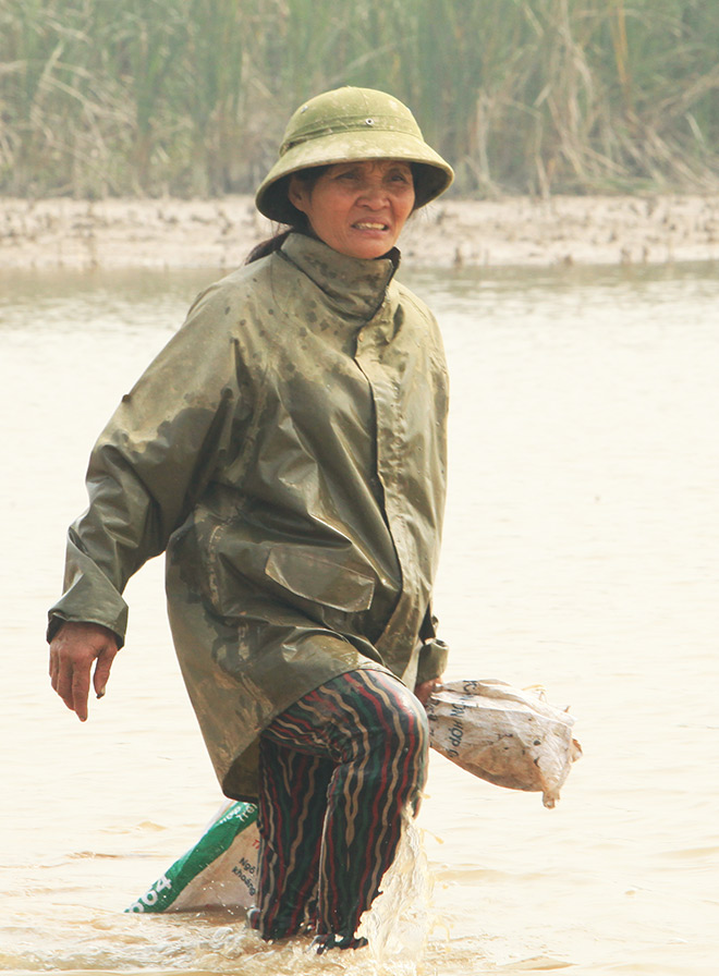 Những ngày cận Tết, cứ 5h sáng chị phải lội xuống bùn, nước quây lưới, bắt cá bán
