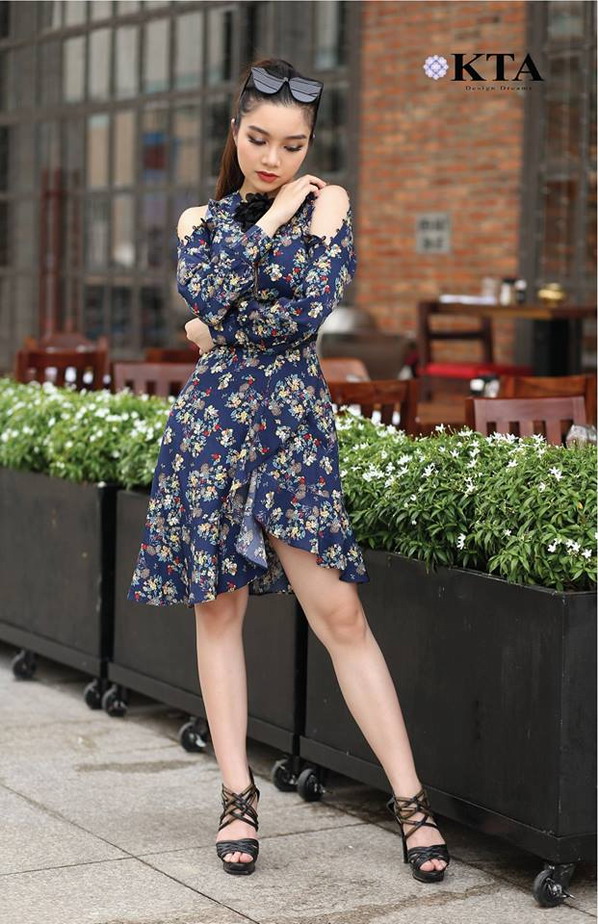 Diễn viên Võ Trinh đẹp rực rỡ trong mẫu thiết kế đầm Lụa Hoa nhí. Đầm với chất vải lụa mềm mại, các đường cắt cúp khéo léo, tôn lên đường cong, nét quyến rũ và sự nữ tính của phái đẹp.