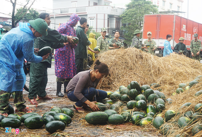Tại hiện trường, hơn 20 tấn dưa hấu từ thùng xe tải đổ tràn xuống đường, một số ít bị dập nát. Tài xế Chánh bị thương nhẹ, may mắn thoát nạn. Ngay sau khi xảy ra vụ việc, UBND quận Liên Chiểu đã điều động bộ đội cùng người dân thu gom toàn bộ số dưa giúp tài xế.