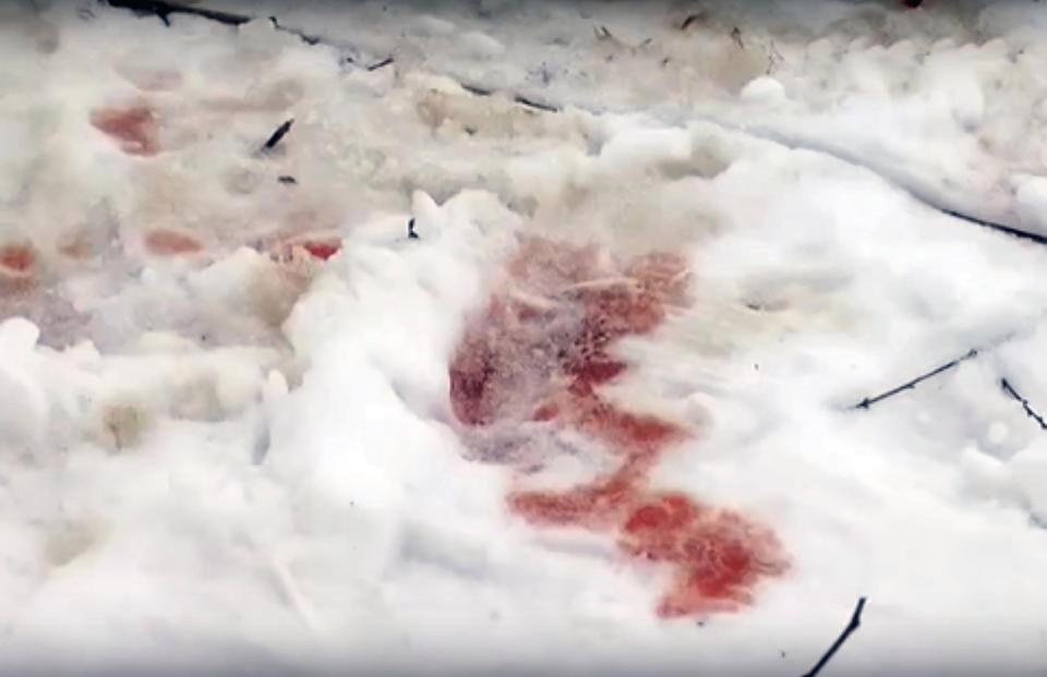 Tại nơi thi thể của cô bé được tìm thấy, máu đã nhuộm đỏ tuyết