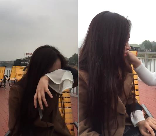 Hình ảnh cô gái khóc lóc khi nghe tin bạn thân đi lấy chồng (cắt từ clip)