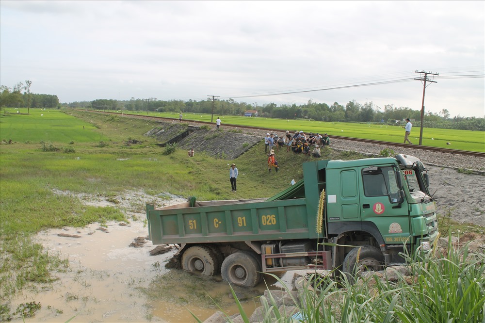 Một chiếc xe tải chở đá khi đi qua đường dân sinh ở Quảng Ngãi đã bị một đoàn tàu húc văng xuống ruộng. Tài xế xe tải đã tử vong tại chỗ.