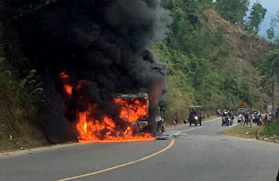 Vụ việc vừa xảy ra vào chiều hôm qua 3/3. Rất may tài xế đã phát hiện mùi khét bốc lên từ phía sau xe, ngọn lửa nhanh chóng lan ra khi đang lưu thông trên đèo. 20 khách thoát chết nhờ phát hiện kịp thời, họ đập cửa thoát hiểm để ra ngoài.