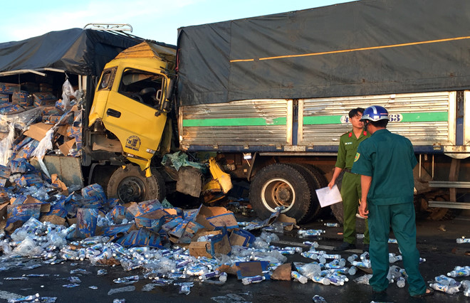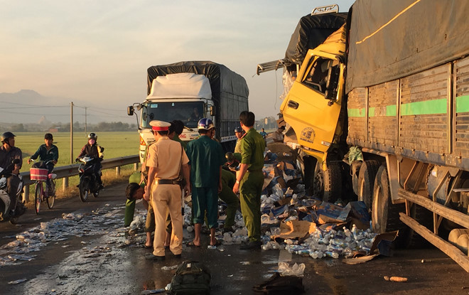Cú tông mạnh làm anh Nam chết tại chỗ, phụ xe Trung bị thương nặng được người dân đưa đi cấp cứu. Đầu cabin xe biến dạng, hư hỏng nặng. Lượng lớn hàng hóa đổ xuống đường làm giao thông qua khu vực khó khăn.