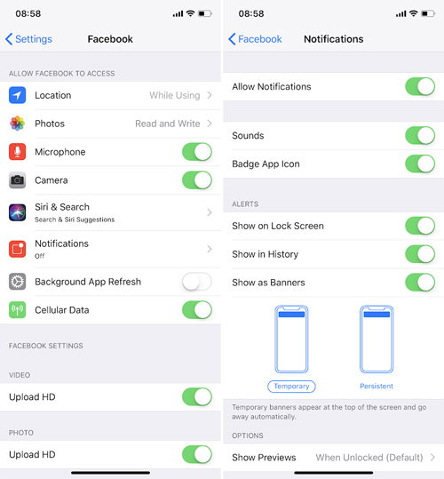 Với từng ứng dụng, vào phần quyền truy cập để xem ứng dụng đang sử dụng các quyền nào với máy. Như với Facebook, phần mềm này đòi hỏi hầu hết các quyền và người dùng phải tắt các chỉ mục quan trọng như tin nhắn SMS, điện thoại, lịch. Các dữ liệu còn lại có thể tắt/mở tùy theo độ bảo mật cá nhân. Tuy nhiên, khi tắt các quyền truy cập như bộ nhớ, micro, máy ảnh, vị trí có thể ảnh hưởng đến một số tính năng.