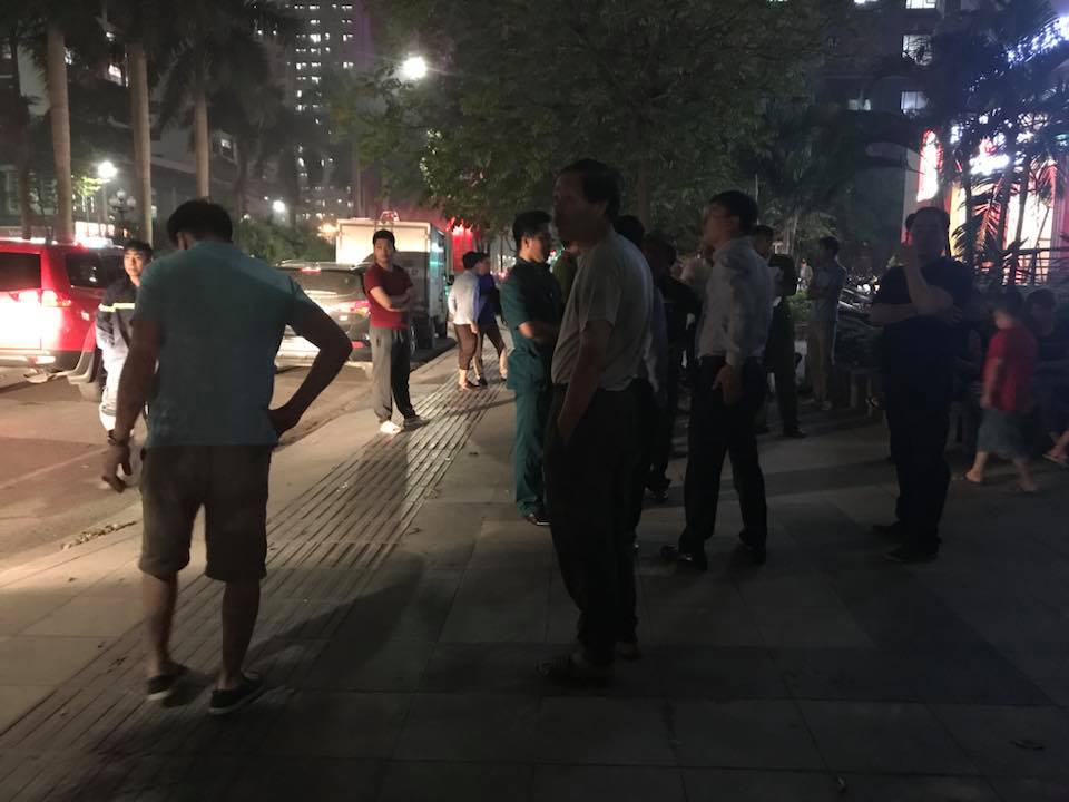 Người dân hoảng hốt chạy xuống sân tòa nhà