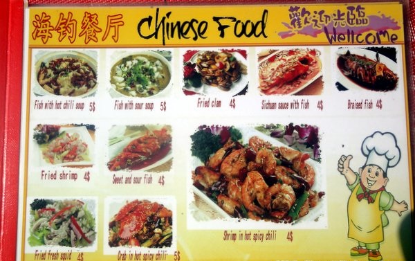 Thực đơn về các món ăn Trung Quốc trong một nhà hàng tại Sihanoukville, Campuchia. (Ảnh: SihanoukVille-Cambodia.com)