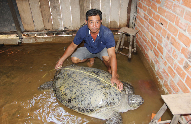 Ngày 9.4, lão ngư 63 tuổi Phạm Văn Ren (ngụ ấp Phước Lý, xã Bình Khánh Đông, H.Mỏ Cày Nam, tỉnh Bến Tre), cho biết gia đình ông hiện đang tạm nuôi còn rùa biển này. Con rùa biển này được nhiều người hỏi mua, trong đó, giá cao nhất hiện tại là 150 triệu đồng do một người đàn ông đến từ tỉnh Tiền Giang đưa ra.