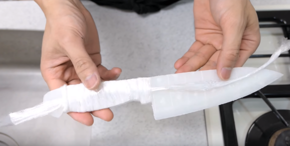 Làm dao bằng màng bọc thực phẩm. (Nguồn: YouTube
