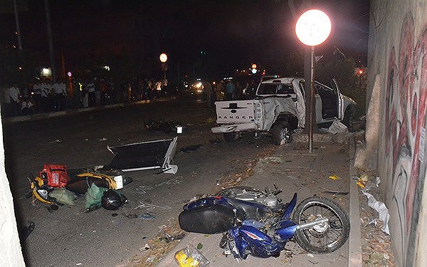 Ghi nhận tại hiện trường cho thấy một trụ đèn tín hiệu giao thông bị tông gãy, nhiều cây xanh bị tông ngã đổ xuống đường. Chiếc xe bán tải cũng bị hư hỏng nặng phần đầu và rất nhiều xe máy của các nạn nhân nằm la liệt khắp nơi.
