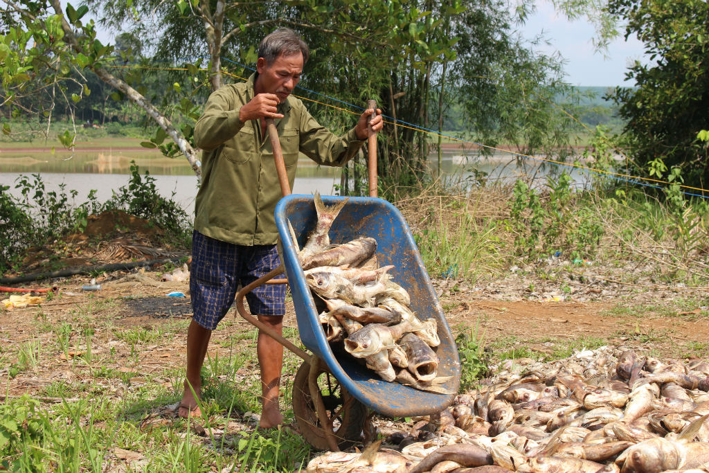 Thế nhưng, do số lượng cá chết quá lớn không vớt kịp, nhiều xác cá thối rữa trôi nổi trên mặt nước gây mùi hôi tanh, khó chịu. Các hộ dân buộc phải dùng cá chế ủ làm phân bón cho cây trồng.