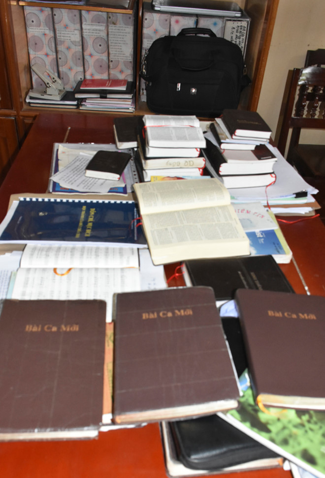 Lực lượng công an cũng đã thu giữ 1 bộ tăng âm loa đài, 1 USB lưu trữ các bài hát về đức thánh, 1 bục đứng Inox và nhiều tài liệu liên quan đến hoạt động của "Hội thánh đức chúa trời mẹ".